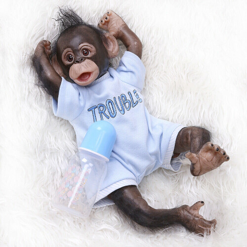 Type: Our little baby doll is here, and she is the most beautiful shade of blue! She comes in a lovely package that is sure to make you smile. You’ll get one baby monkey boy, one outfit, one feeding bottle, one nipple, and one birth certificate. Please note that other accessories are not included. 1.We understand that monitors can display colors differently, so the pictures might not always show the item’s true color. 2. It would be great if you could compare the detailed sizes with yours. Please allow for a 1–2 cm error due to manual measurement. Product Tags: Silicone, Realistic.
