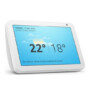 Alexa can show you more, and we’re so excited to tell you all about it! With an 8″ HD screen and stereo sound, Alexa can help you manage your day at a glance. Just ask Alexa to show you TV programs, movies, or the news. You could listen to the radio, podcasts, or audiobooks. You can even make video calls to other Echo devices with a screen or the Alexa app! With voice control compatible devices, you can manage them on the easy-to-use display. Hey, why not show off your Amazon photo albums and give your Home screen a little makeover? I would love to help you create morning routines to start your day. Cook step-by-step recipes, and you’ll be amazed at the results! And you’ll love how easy it is to update your to-do lists and calendars. Hey, just a friendly reminder to check the weather and traffic as you’re heading out. We’ve designed it to protect your privacy. You can disconnect the microphones and camera with the press of a button. Hey, let me tell you about the Echo Show 8. It’s about 13 inches tall and 20 inches wide. It’s got a great stereo sound with really vivid visuals on its 8-inch HD screen. And it connects to Alexa, so you can enjoy all that awesome sound with top-notch pictures. Hey, if you’re in the UK, why not check out the on-screen lyrics feature with Amazon Music? Set alarms and timers to help keep you on track. Hey, why not take a moment to show off your favorite photos? And don’t forget to check the weather and traffic as you head out. Hey, why not take a moment to catch up on the latest news highlights? “Alexa, would you show me my family photo album?” Hey, why not take a moment to catch up on today’s news and sports highlights? Hey, why not take some time to watch some of your favorite TV shows, movies, or music videos? Hey, why not listen to some tunes on one of those streaming services? You’ve got options like Apple Music, Spotify, and Deezer. And with Amazon Music, you can even see the lyrics and album art. You can call almost anyone hands-free, including UK mobile and home numbers (but please remember that emergency calling isn’t supported). You can also call other Echo devices and the Alexa app. You can even make video calls to other Echo devices with a screen or the Alexa app! You can also link Alexa with your mobile phone account to ask Alexa to make and answer your mobile calls (Vodafone UK).With the Drop In feature enabled for room-to-room calling, you can quickly connect with Echo devices in your home. Let your family know when dinner is ready, ask for help with a chore, or remind the kids to go to sleep—without raising your voice. Rest assured, Alexa and Echo devices are built with multiple layers of privacy protection. You’ll love the Mic/Camera Off button and the built-in camera cover. You can also delete your voice recordings to keep your experience just how you like it. What’s in the box: Echo Show 8 Manual